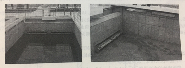 翻板閥濾池的配水系統(tǒng)屬于中(小)阻力配水系統(tǒng),采用獨(dú)特的上下雙層配氣配水層形 式,由橫向配水管、豎向配水管和豎向配氣管組成。這種獨(dú)特的結(jié)構(gòu)特點(diǎn)使得翻板閥濾池獲 得較其它類型濾池更均勻的配水配氣性能。 翻板閥濾池的反沖洗方式也與其它類型氣水反沖洗濾池不同,翻板閥濾池采用閉閥沖洗 方式,沖洗過程分為氣沖+氣水聯(lián)沖+水沖、單獨(dú)水沖兩大階段,無論水沖、氣沖時(shí)都不 向外排水,一個(gè)反沖洗階段結(jié)束后,靜止數(shù)十秒后再排水。因此翻板閥濾池基本不會出現(xiàn)濾料流失現(xiàn)象。